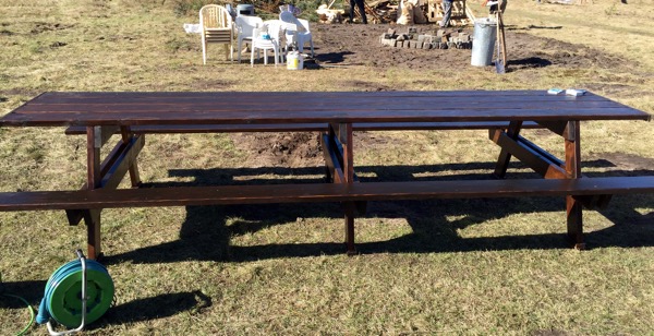 Da uns Hr. Wilde eine so tolle Sitzgarnitur gebaut hat, muss es dafür einen extra Beitrag geben. Pünktlich zum Osterfest wurde uns heute Vormittag die selbstgebaute Garnitur geliefert und gleich eingeweiht! Hoffen wir auf viele schöne Feiern an diesem Tisch 🙂