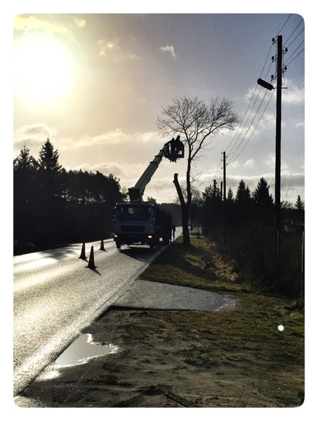 Seit gestern werden schon fleißig Bäume am Straßenrand gefällt für den Bau des Radweges durch die Siedlung 2. Sicherlich sehr wichtig für unsere Kinder und Radfahrgruppe!